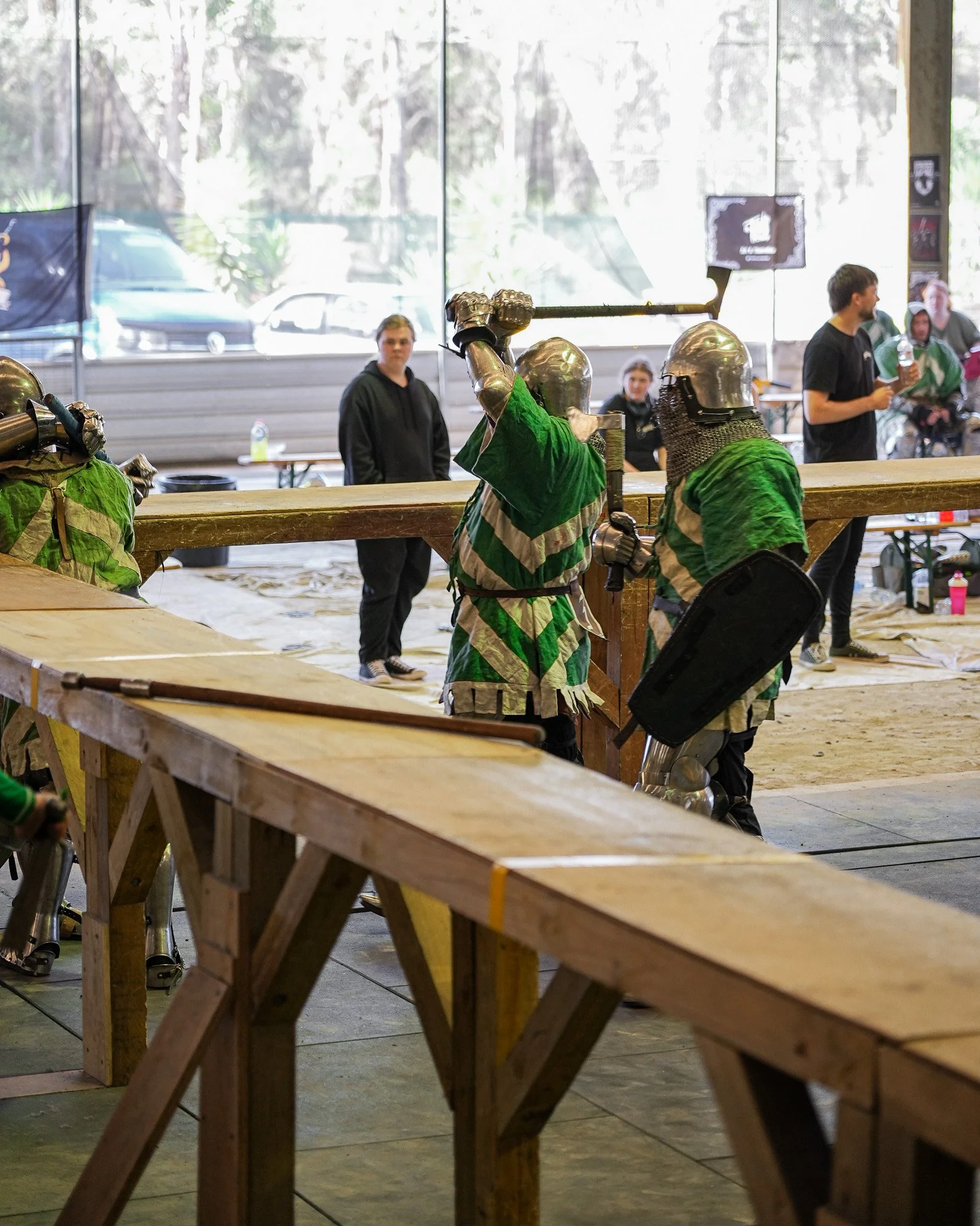 In Australia, armoured combat has steadily grown over the last decade, with dozens of clubs forming nationwide and competing at local, state, and national levels. Events feature everything from 1v1 duels to 5v5 team battles and full-scale melees. The Australian Medieval Combat Federation (AMCF) serves as the governing body for the sport in Australia, ensuring safety standards, competition regulations, and national rankings are upheld.