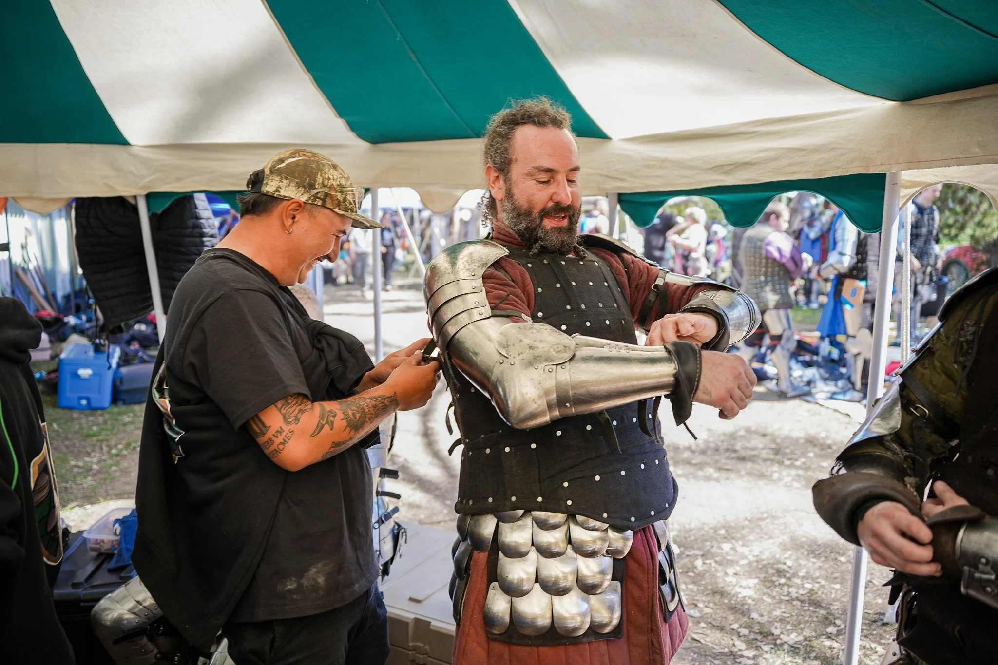 Armoured combat relies on accurate and regulated historical equipment — but with modern safety considerations. Fighters wear authentic, period-specific steel armour (usually 13th–15th century), and use blunted steel weapons that are approved under AMCF and international competition guidelines.